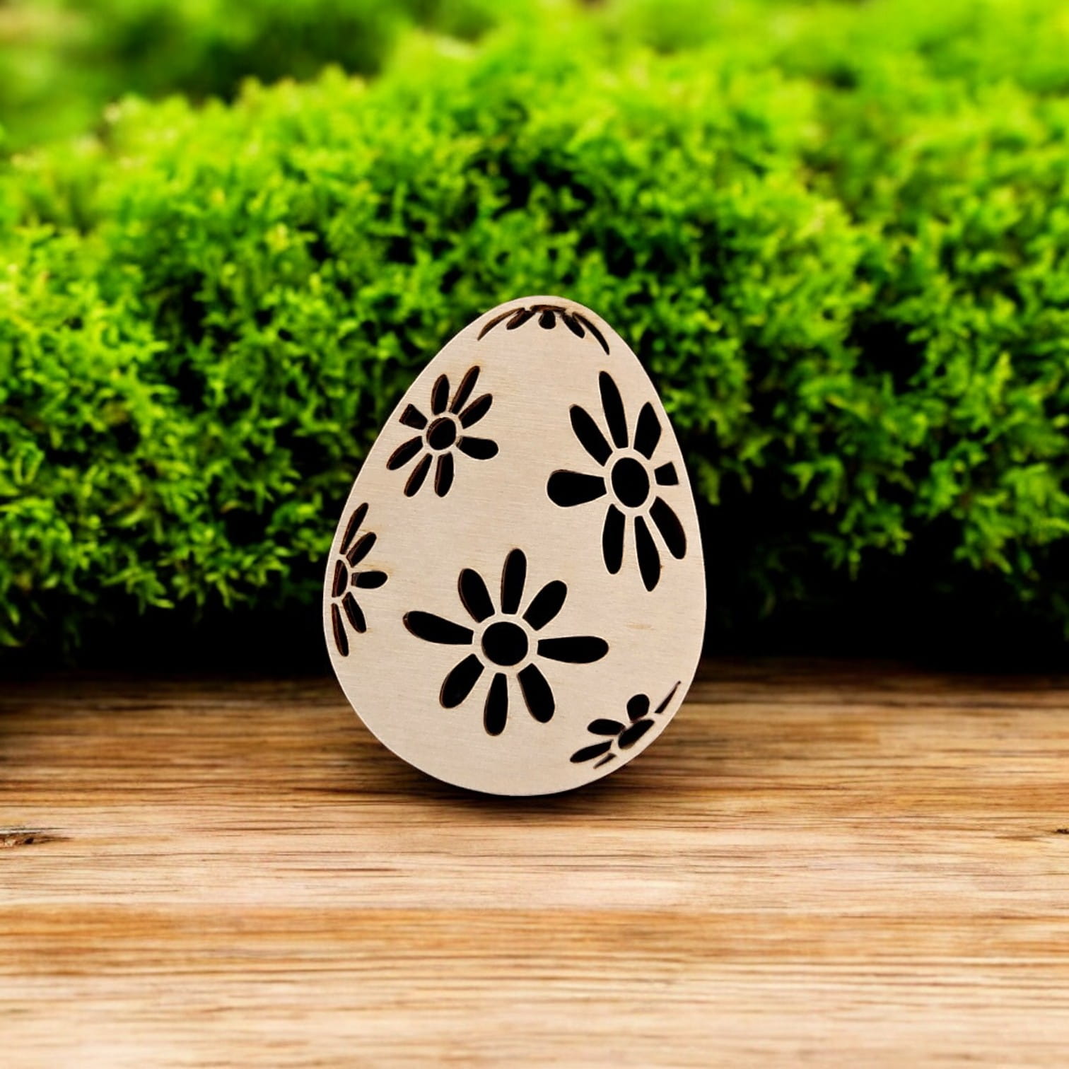 Elegancka pisanka wielkanocna o wymiarach 6 cm x 4,5 cm, precyzyjnie wycięta laserowo z wysokiej jakości materiałów. Delikatny kwiatowy wzór nadaje jej subtelności i uroku, czyniąc ją wyjątkową ozdobą świąteczną.