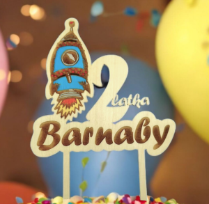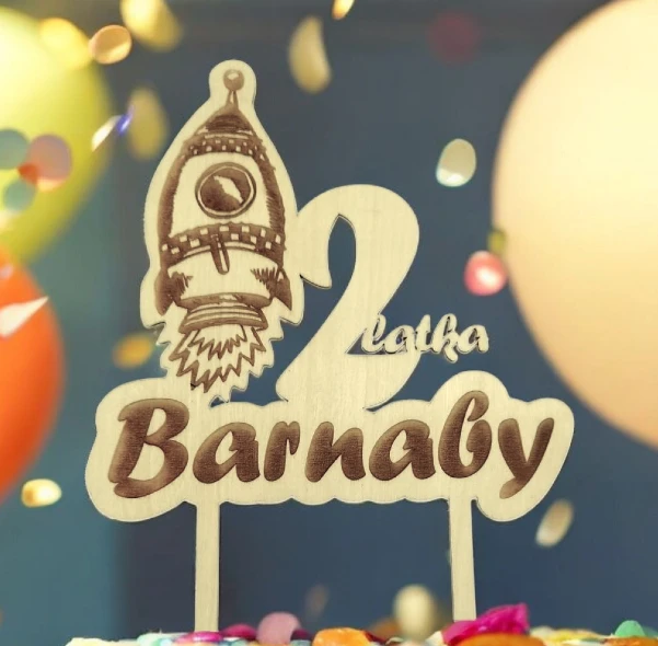 Drewniany Topper na urodziny dla dziecka - Rakieta sklejka 18x17 cm grawerowany malowany