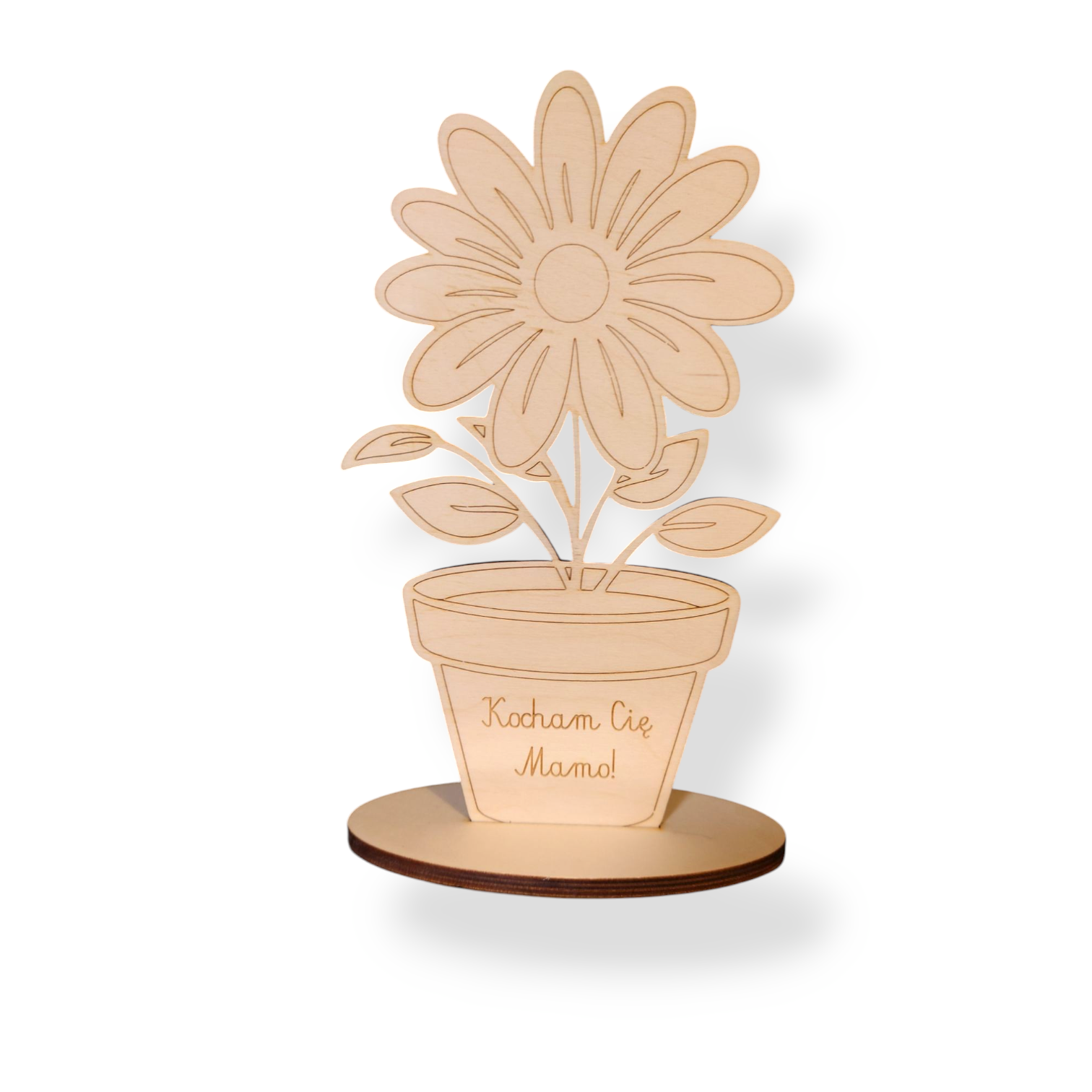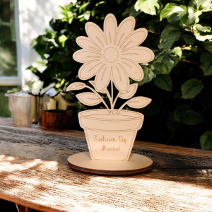 Wyjątkowy upominek, który wyrazi więcej niż tysiąc słów! Ten uroczy kwiatek wykonany jest z wysokiej jakości sklejki o grubości 3 mm, osadzony na stabilnej podstawce o grubości 6 mm. Idealnie sprawdzi się jako prezent od dziecka dla ukochanej Mamy – zarówno gotowy do wręczenia, jak i do własnoręcznego ozdobienia farbami, flamastrami czy brokatem.