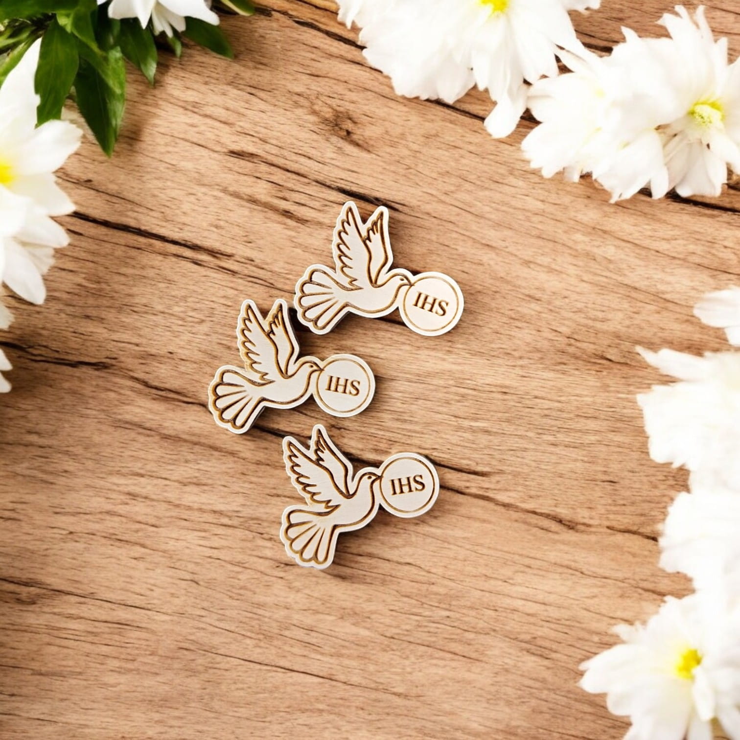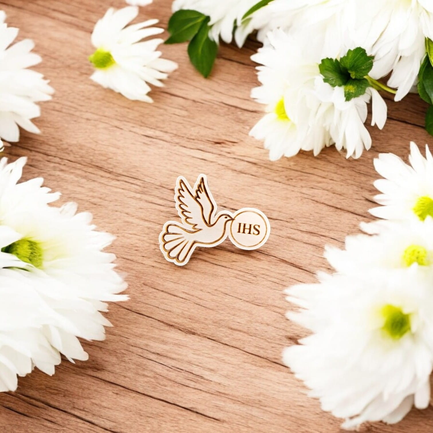 Gołębica z IHS sklejka grawerowana scrapka 3 cm - do DIY i rękodzieła