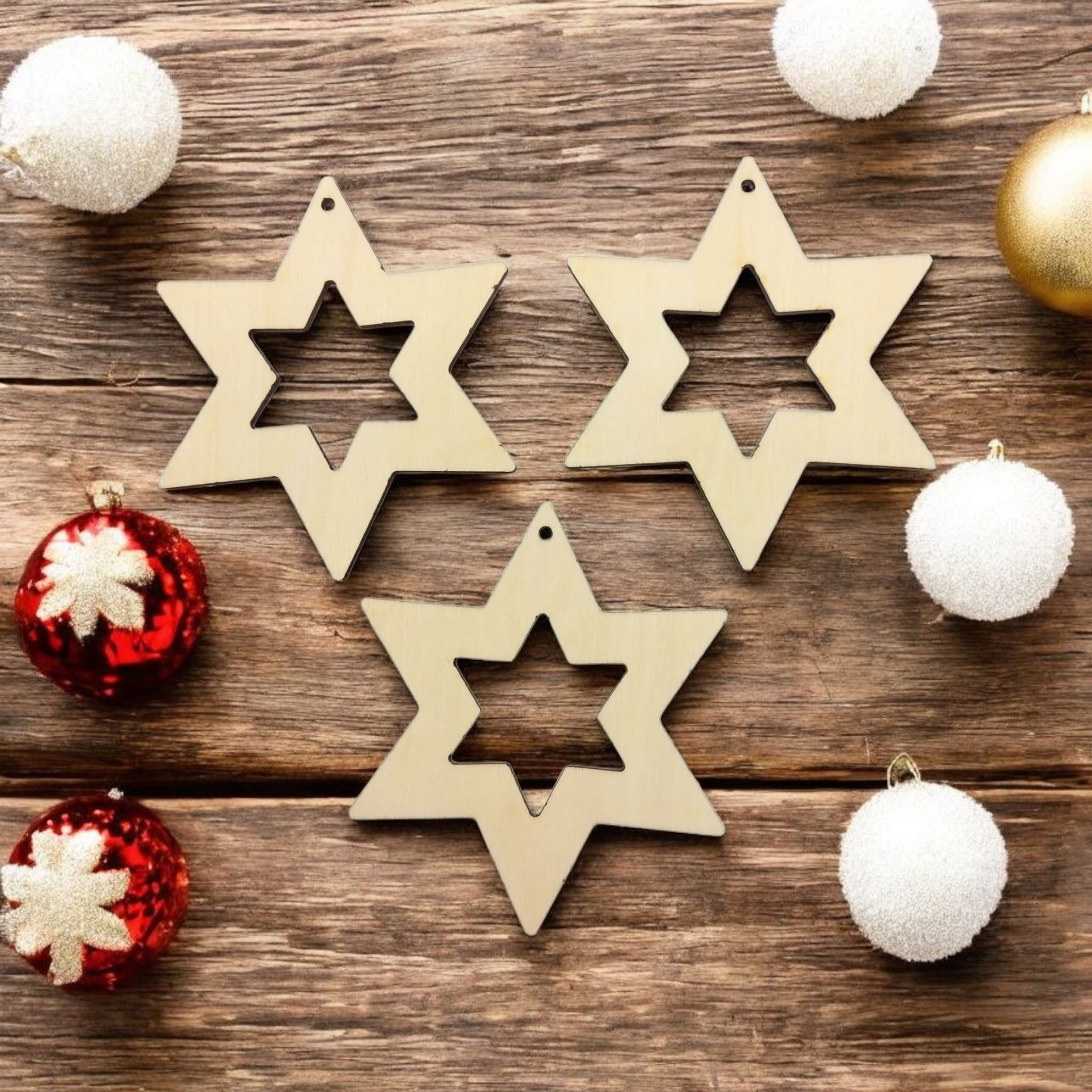 Minimalistyczna i naturalna ozdoba choinkowa, która wprowadzi do Twojego domu magię świąt! Gwiazdka wycięta ze sklejki to doskonały wybór dla miłośników prostoty, stylu eko i rękodzieła. Delikatne wycięcie wewnętrzne nadaje jej lekkości, a otwór umożliwia łatwe zawieszenie na choince, stroiku lub jako dodatek do prezentu.