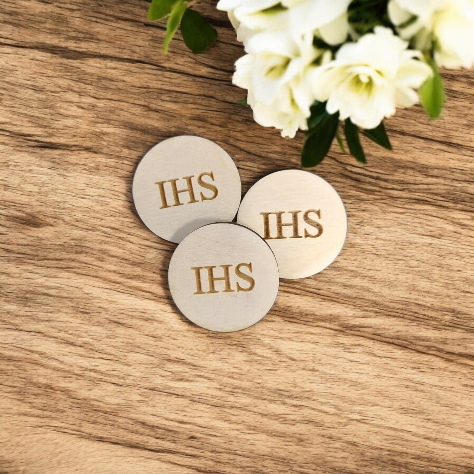 Hostia z IHS sklejka grawerowana scrapka 3 cm - do DIY i rękodzieła
