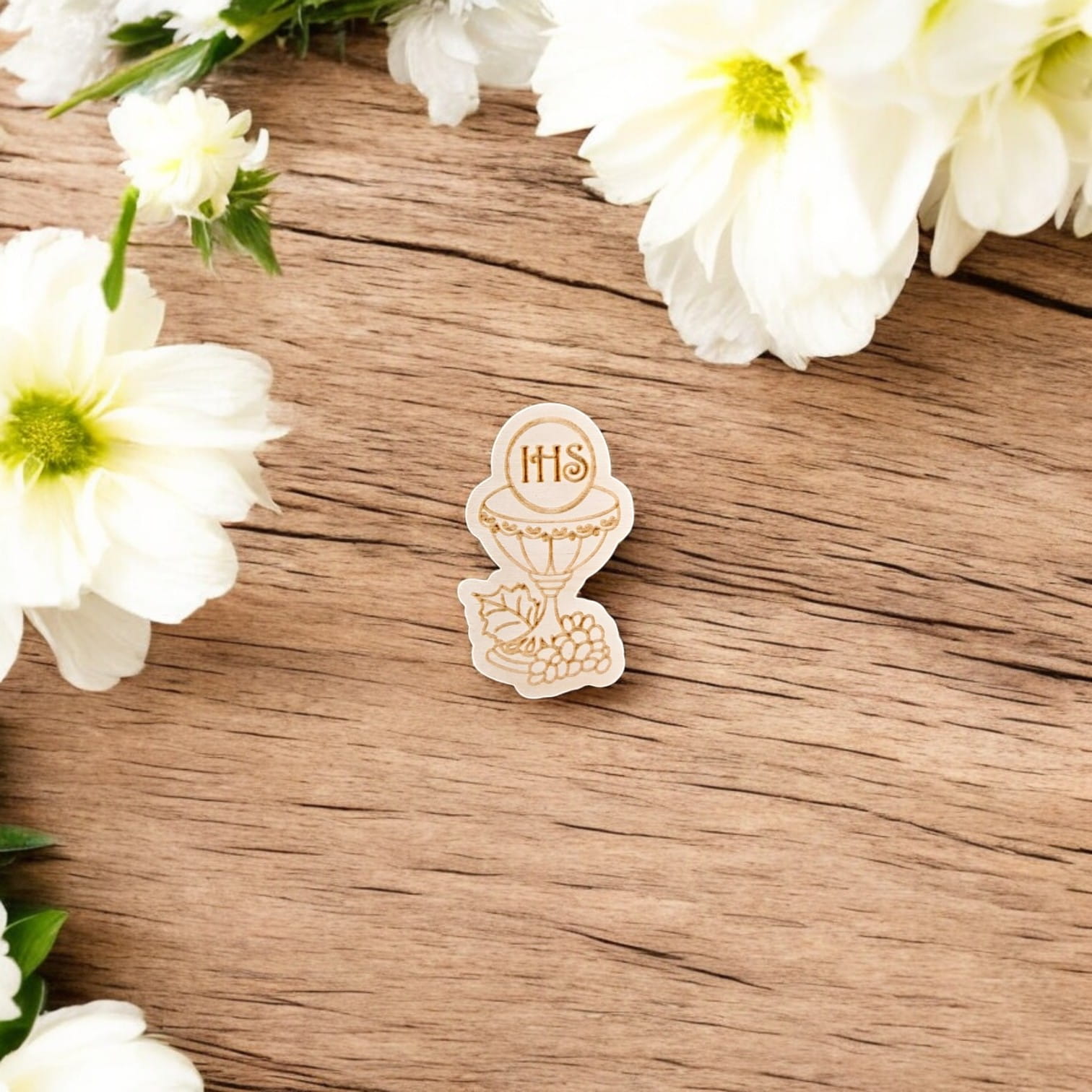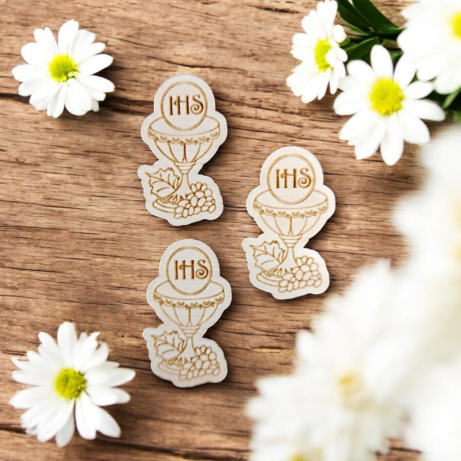 Kielich z IHS z winogronem sklejka grawerowana scrapka 4x2,5 cm - do DIY i rękodzieła