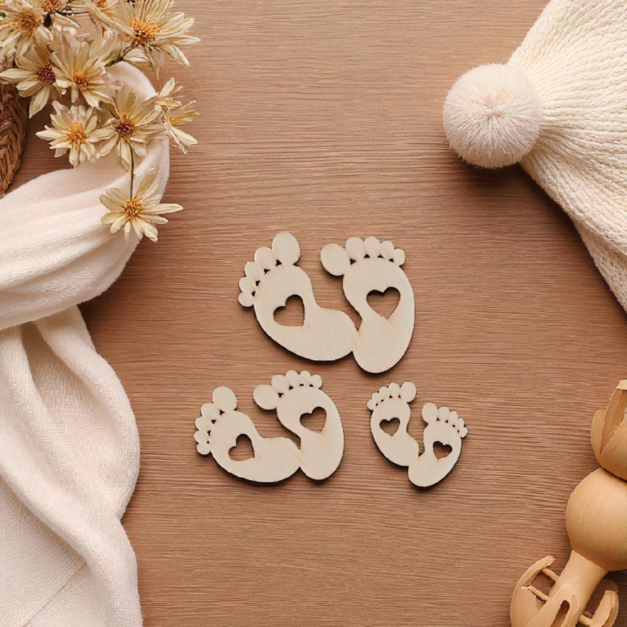 Dodaj wyjątkowego uroku swoim projektom rękodzielniczym dzięki zestawowi drewnianych scrapek w kształcie stópek niemowlęcych. Każda para posiada wycięte serduszko, które symbolizuje miłość i delikatność – idealny motyw na dekoracje związane z narodzinami dziecka, chrzcinami, baby shower czy albumami wspomnień.