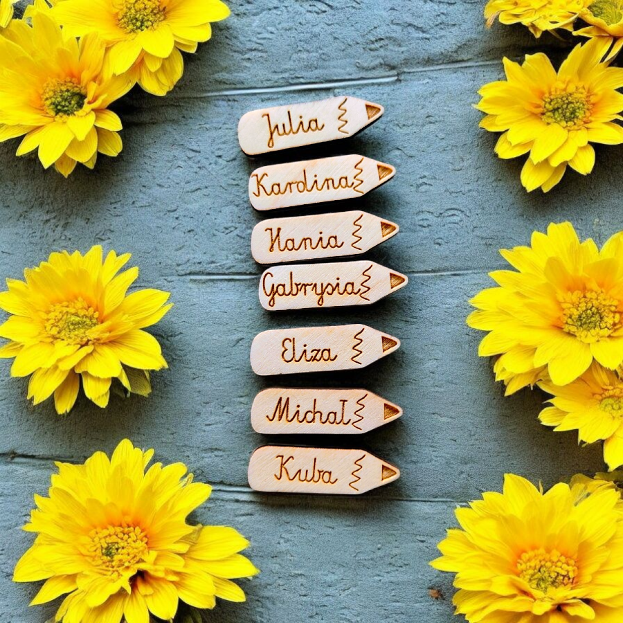 Nasze drewniane scrapki w kształcie ołówka/kredki to idealny wybór dla każdego, kto ceni sobie oryginalność i personalizację. Dzięki trwałemu grawerowi możesz zamówić imię, krótkie słowo lub napis, który nada Twoim pracom indywidualnego charakteru.