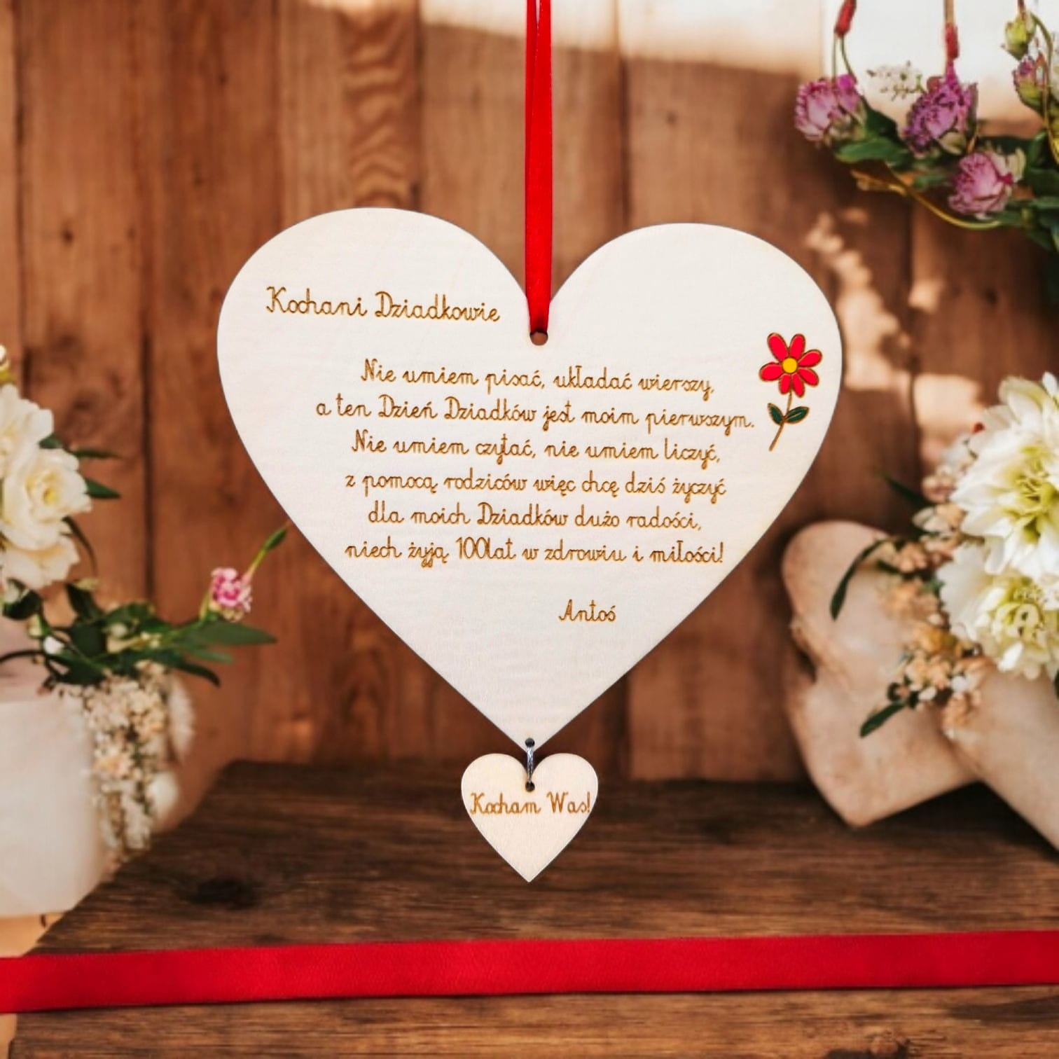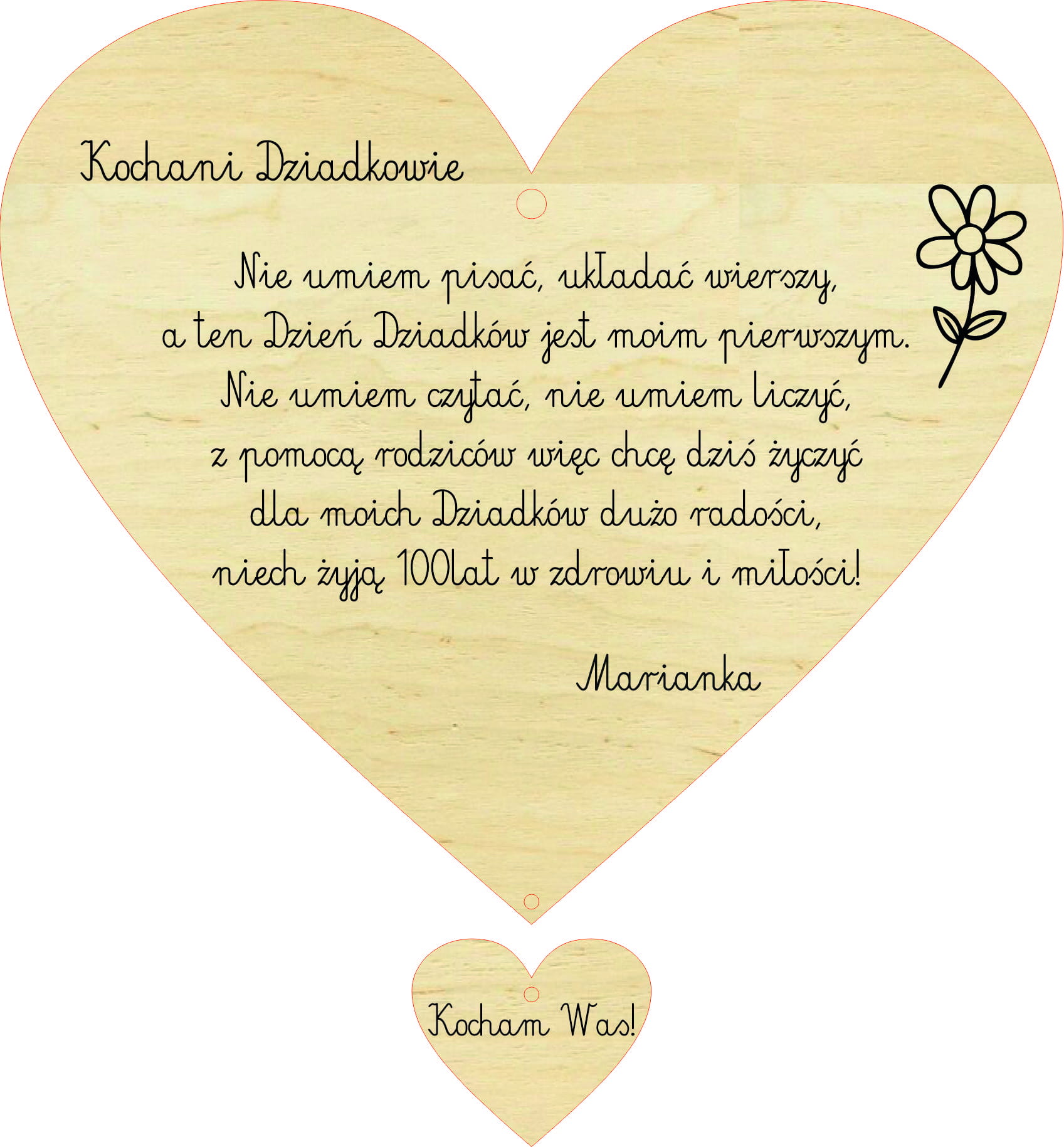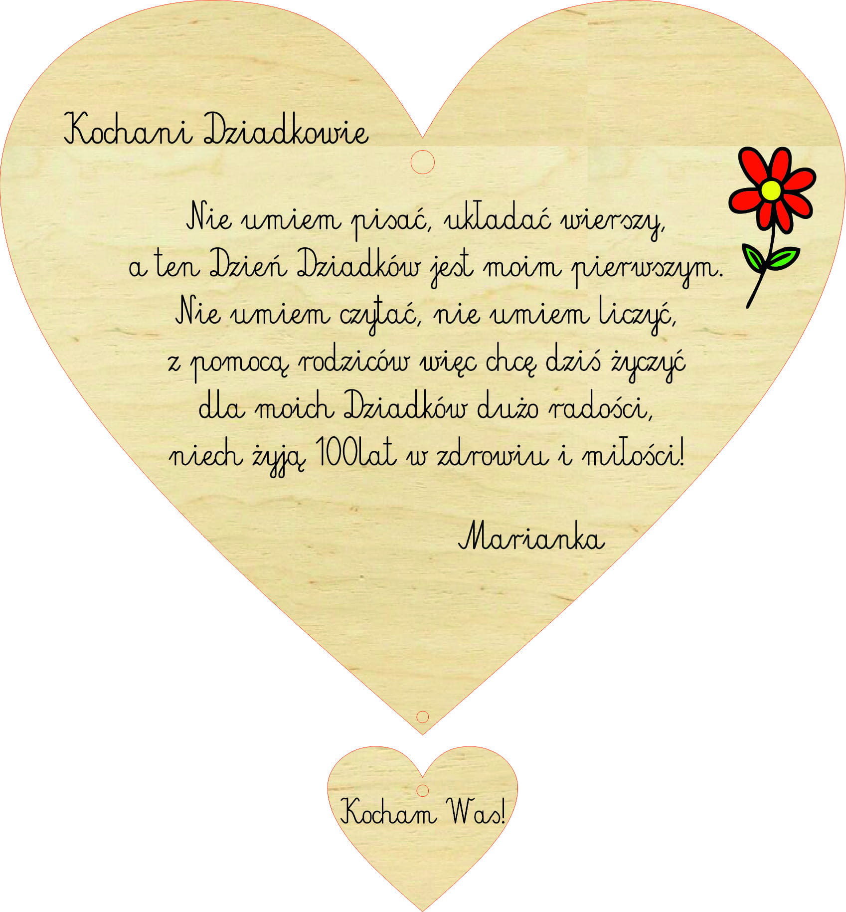Serce dla Babci i Dziadka z pięknym wierszykiem.