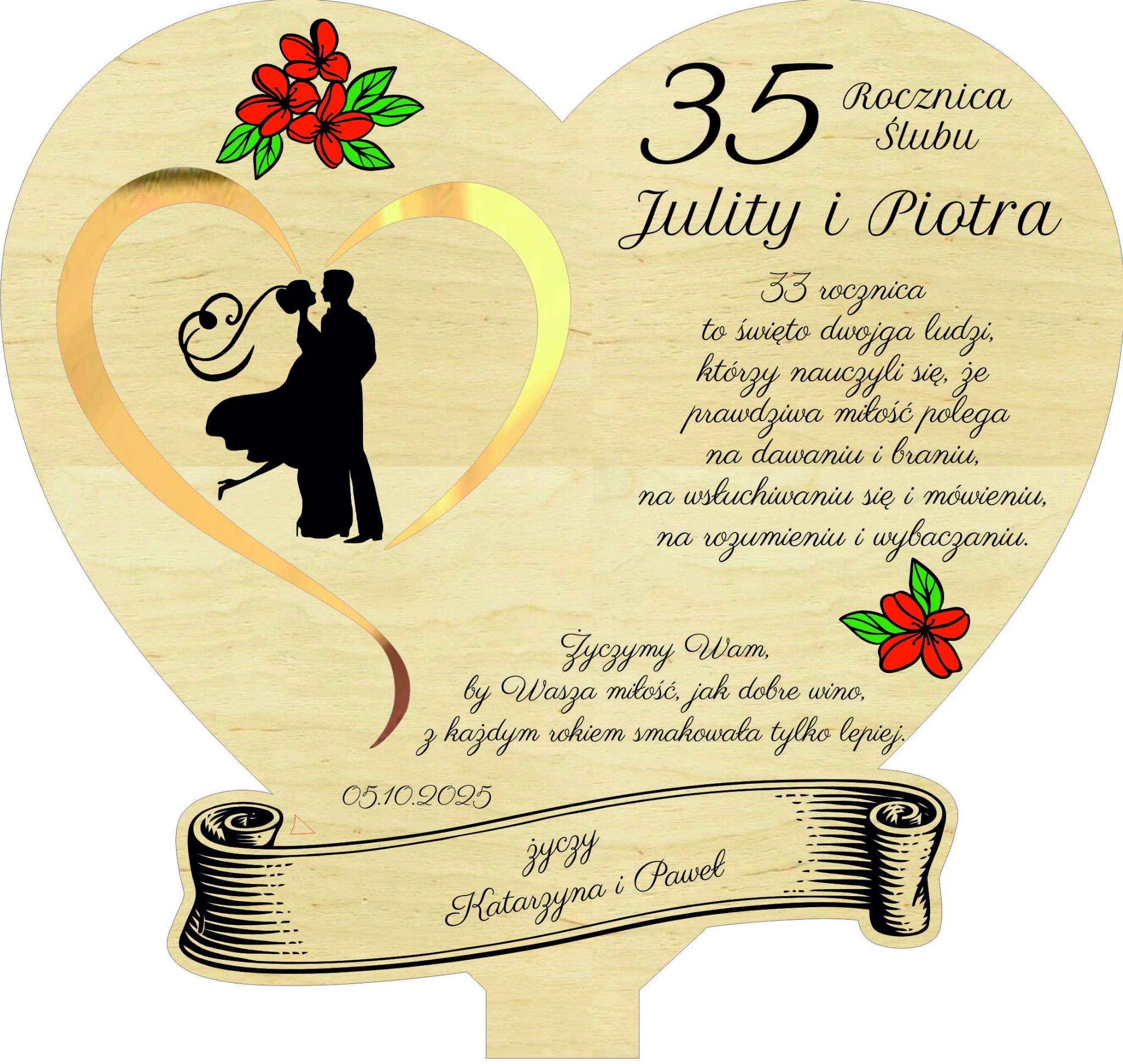 Statuetka serce na rocznicę jubileusz prezent okazje grawer personalizowany 19x18 cm