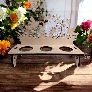 Elegancki i funkcjonalny stojak na pisanki to doskonała dekoracja wielkanocnego stołu oraz świetna baza do kreatywnych zabaw! Wykonany z naturalnej sklejki, przeznaczony do samodzielnego złożenia – bez potrzeby użycia kleju czy narzędzi.