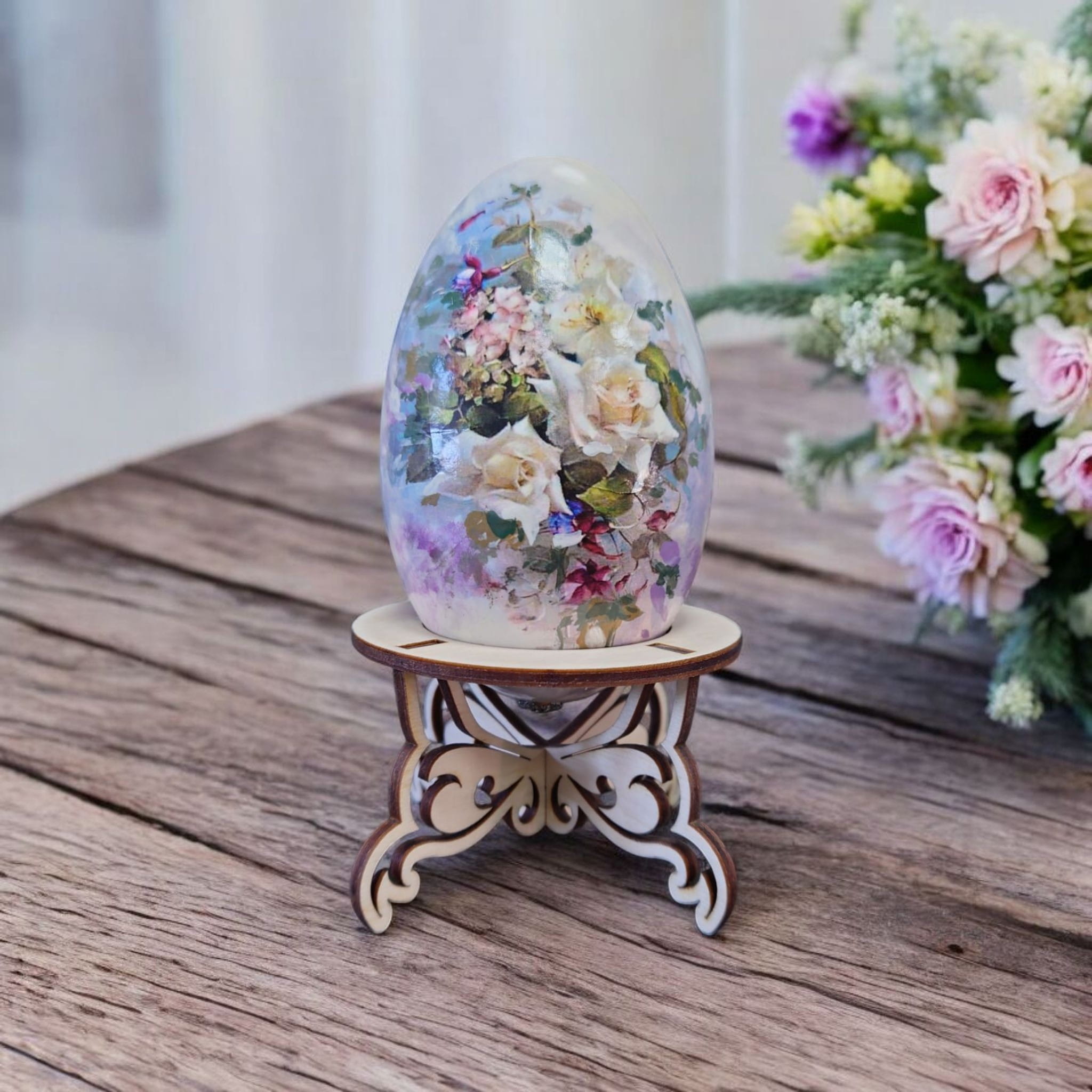 Świetnie sprawdzi się jako podstawka na wielkanocne jajka, pisanki, jajka zdobione decoupage czy inne ozdobne przedmioty. Doda uroku każdemu wnętrzu, nadając mu subtelny, elegancki charakter.