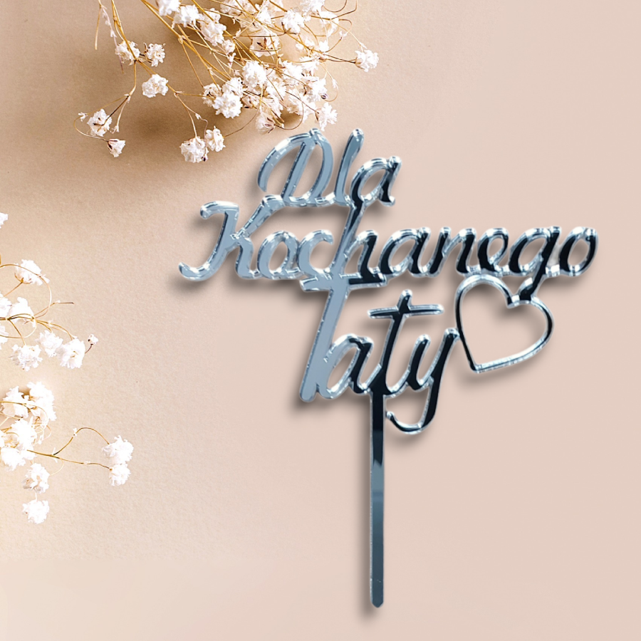 Podkreśl wyjątkowy charakter uroczystości pięknym topperem! Wykonany z lustrzanego złotego/srebrnego akrylu, ma elegancki wycięty napis „Dla kochanego Taty” oraz subtelne serce, które dodaje mu ciepłego i osobistego charakteru. To idealna dekoracja na Dzień Ojca, urodziny lub każdą okazję, by podziękować tacie za wszystko, co robi.