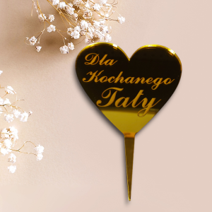 Dodaj odrobinę elegancji do prezentu dla wyjątkowego Taty! Ten piękny topper w kształcie serca, wykonany z lustrzanego złotego akrylu, to idealny dodatek na Dzień Ojca, urodziny lub inne wyjątkowe okazje. Grawerowany napis „Dla kochanego Taty” sprawia, że dekoracja nabiera osobistego charakteru.