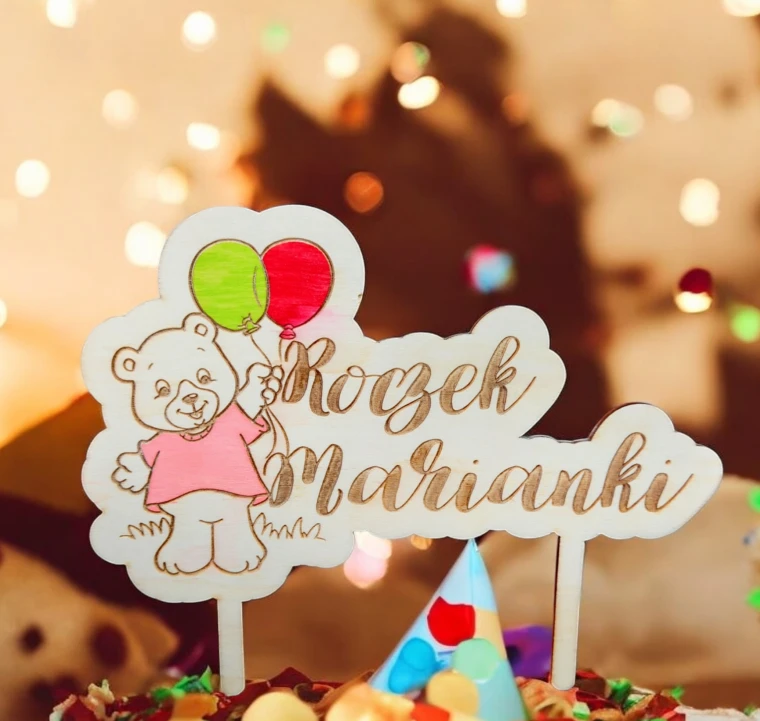 Uroczy topper z misiem i balonikami to idealna dekoracja na pierwsze urodziny Twojego malucha! Dodaj odrobinę magii do urodzinowego przyjęcia dzięki tej wyjątkowej ozdobie, która podkreśli radosny charakter uroczystości.