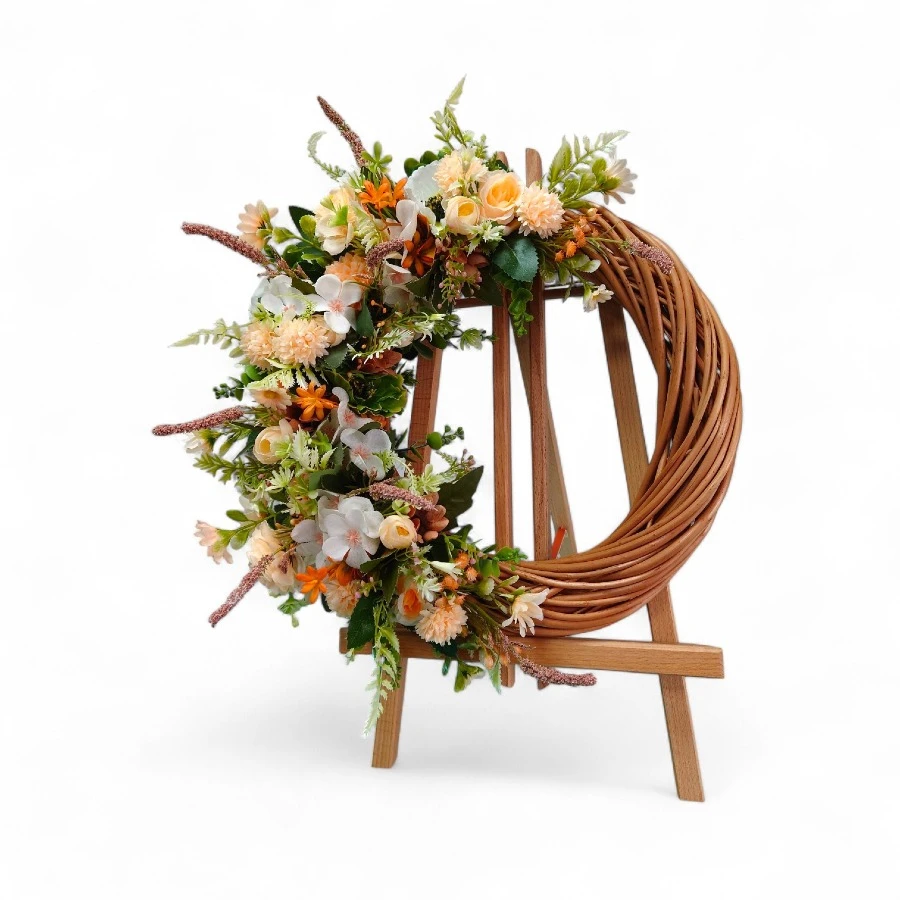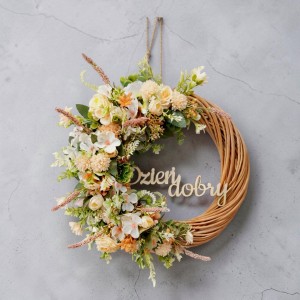 Każdy wianek powstaje ręcznie, z dbałością o detale i kompozycję. Naturalna wiklina pięknie współgra z delikatnymi, pastelowymi kwiatami, tworząc efekt świeżości przez cały rok – bez konieczności pielęgnacji. To dekoracja, która nie więdnie i zawsze wygląda perfekcyjnie.