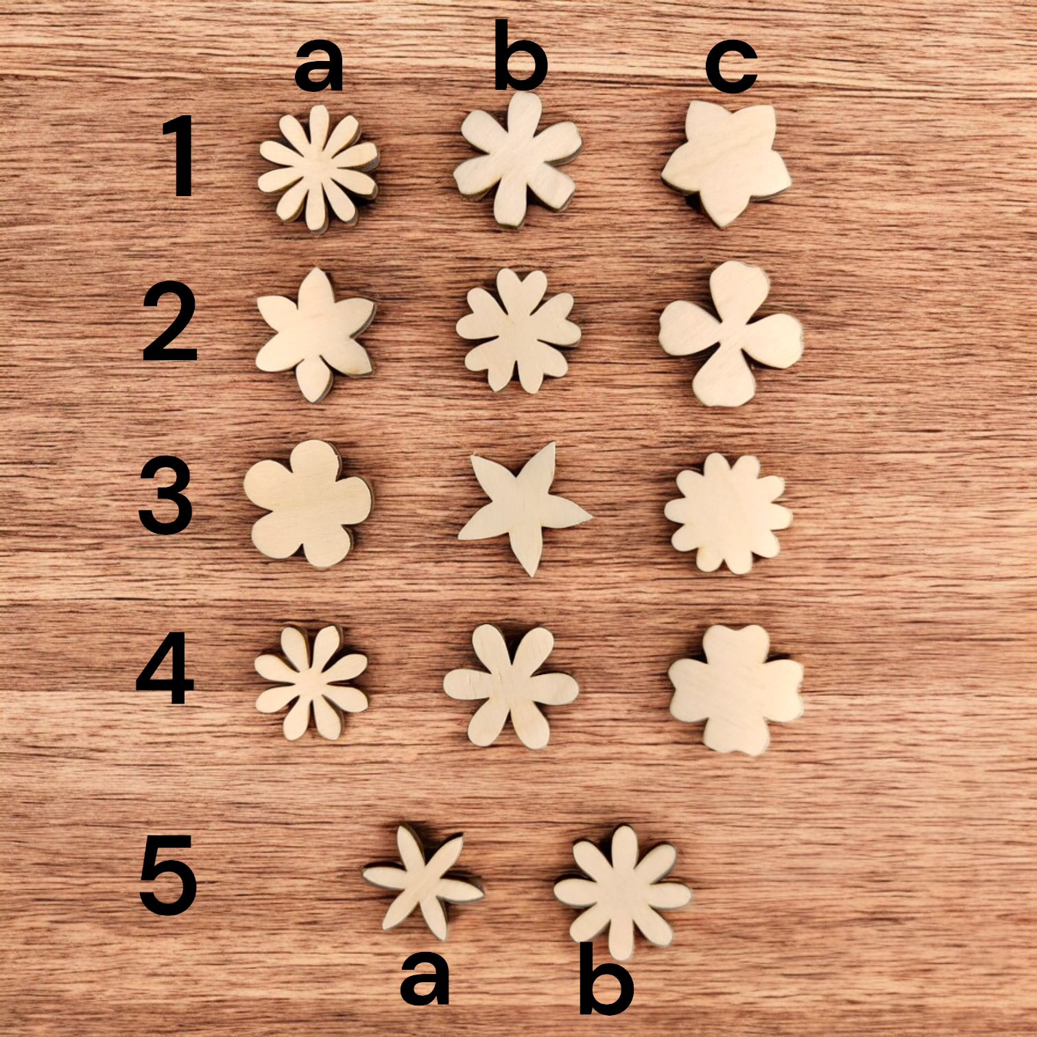 Zestaw drewnianych kwiatków dekoracyjnych 14 wzorów - do DIY i rękodzieła